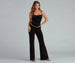 Bring the chic and stunning vibes to your night-out look with this on-trend velvet jumpsuit! It features a sleeveless cowl neckline, chunky chain-link straps that lead to an open back with a cross-strap design, a high-rise fitted waist, a chain-link belt accent, and wide pant legs for a retro vibe. The smooth velvet fabric gives the jumpsuit a luxe look. Complete the outfit with strappy stilettos.