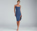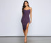Showcase stunning looks for your next date night in this curve-hugging midi dress. It features spaghetti straps that lead to a cross-back design, a cowl neckline, a sultry side slit, and a form-fitting, mid-length silhouette. Complete the outfit with mules and a sleek clutch.