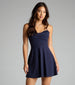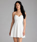 Dressy celebrations or summer date nights are looking sultry in this skater mini dress! Designed with a pretty sequin lace bra trim and a lace-up back that turns heads, you'll make a lasting impression.