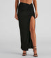 So much for a summer fling! With this maxi skirt, you're sure to fall for it over and over again. It features a high-rise waist with a twist accent, a front high-cut slit, and a form-fitting silhouette on lined knit fabric. Complete your look with the matching top.