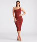 This sultry curve-hugging midi dress gives off major summer weekend vibes! It features an asymmetric one-shoulder neckline with dual adjustable spaghetti straps, an alluring open back with an asymmetric strap design, a midi-length hem, and a bodycon silhouette. The ribbed knit fabric offers plenty of stretch. Style with platform wedges for dinner and drinks.