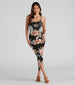 Take a stroll at sunset on your relaxing vacay in this chic floral midi dress. It features a sleeveless V-neckline, adjustable spaghetti straps that lead to a cross-back design, an asymmetrical midi-length hem creating an alluring side slit, and a curve-hugging silhouette. The all-over tropical floral print pairs perfectly with strappy sandals. Complete the look with hoop earrings.