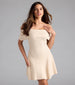 Look sweet on chilly days in this darling sweater mini dress featuring a cute folded, off-the-shoulder neckline and forever flattering skater silhouette.
