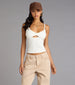 An essential with a twist. This ribbed knit crop top features a sleek cami silhouette with a bold cutout front detail—your new go-to for layering or styling solo this season!