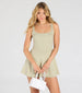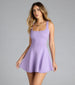 Showcase your sweet side in this ribbed knit mini dress made to please the crowd! It features a sleek scoop neckline and a skater silhouette that flatters every figure. Style with a handbag.