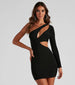 Sweet and stunning, this sexy one-shoulder mini dress will have all eyes on you! It features an asymmetric one-shoulder neckline with a long fitted sleeve, dual sultry asymmetric cutout accents, a mini-length hem, and a bodycon silhouette to flaunt your figure. Complete your club night look in this mini dress with sleek hoop earrings.