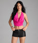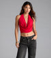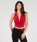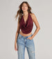 Take the plunge and dare to show skin in this sleeveless halter crop top for a night out! Featuring a halter cowl neckline with bar trim, an open back, and a stylish crop hem, this top is perfect for standing out and making a statement. Complete the look in sleek faux leather pants.