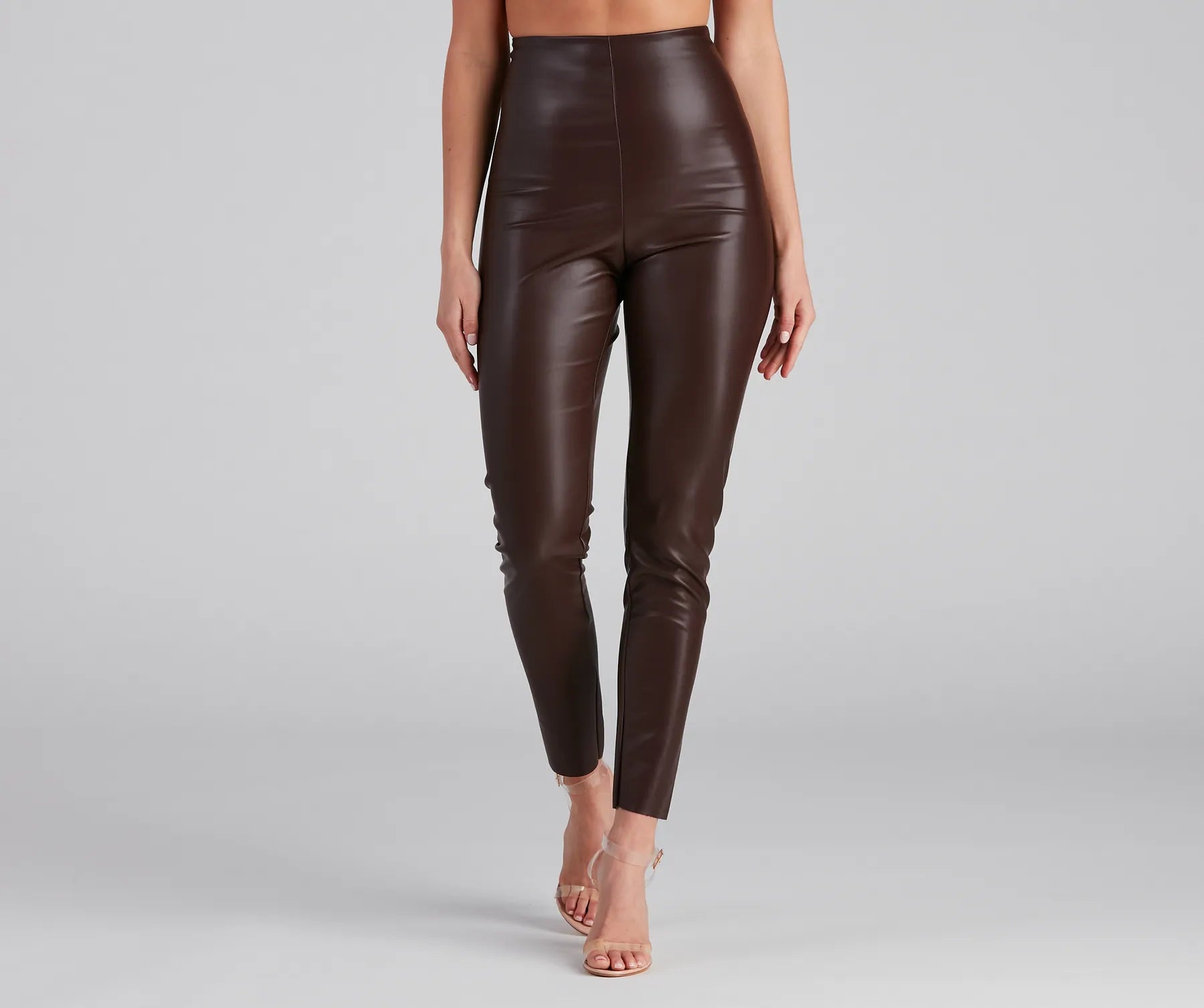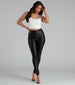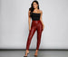 Yes girl, amp up your style with these edgy faux leather leggings! Designed with a firming stretch and an elastic-free waistband for superior comfort, and are composed of a faux leather fabric with a pretty sheen. Style with a beaded bustier top and heels for a glam night out!