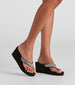 Throw it back to the early 2000s in these stunning sandals! They feature a rounded almond toe, wedge sole, and rhinestone thong straps on a comfort foam footbed. Complete the look in a crop top and flared pants.