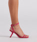 Catch all the attention in these fashion-forward heels featuring a square toe, thin toe strap, an angled stiletto heel, and a wrap-around ankle strap with buckle closure. The heels are composed of sleek and smooth faux leather material. Style with a trendy mini handbag.