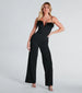 Babe, it's time to slay in this iconic and chic marabou feather jumpsuit! It features a notched wired V-neckline with a fabulous marabou feather trim, adjustable spaghetti straps, a fitted high waist, a hip-hugging fit to show off your curves, and a trendy wide-leg silhouette. The crepe fabric offers a moderate stretch. Style this jumpsuit with a sparkly rhinestone belt to snatch your waist and a pair of platform heels!