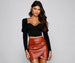 Keep it timelessly chic in a corset that elevates your look! The corset features a sweetheart neckline, padded cups, contrast piping with flexible boning, long sleeves with a lattice design, and a cropped hem. The top is composed of a lined crepe fabric that offers a form-hugging fit with minimal stretch. Complete look with mom jeans and mules.