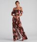 Radiate your beauty in this blooming floral printed maxi dress! It features a romantic off-the-shoulder neckline, short ruffled drape sleeves, an empire waist, and a flowy floor-length silhouette with dual high front slits. Style this dress with strappy sandals.