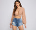 Keep it totally chic with this cute tie-front top! The top features a plunging V-neckline, a tie-front accent, long bishop sleeves, a cropped hem, and an eyelet pattern. Complete look with cutoff shorts.