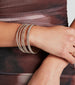 Add a touch of shine to your dressy 'fits with this glitzy and glam rhinestone bangle bracelet set. It features six thin bangles embellished with sparkling mini rhinestones. Style with a glitter clutch.