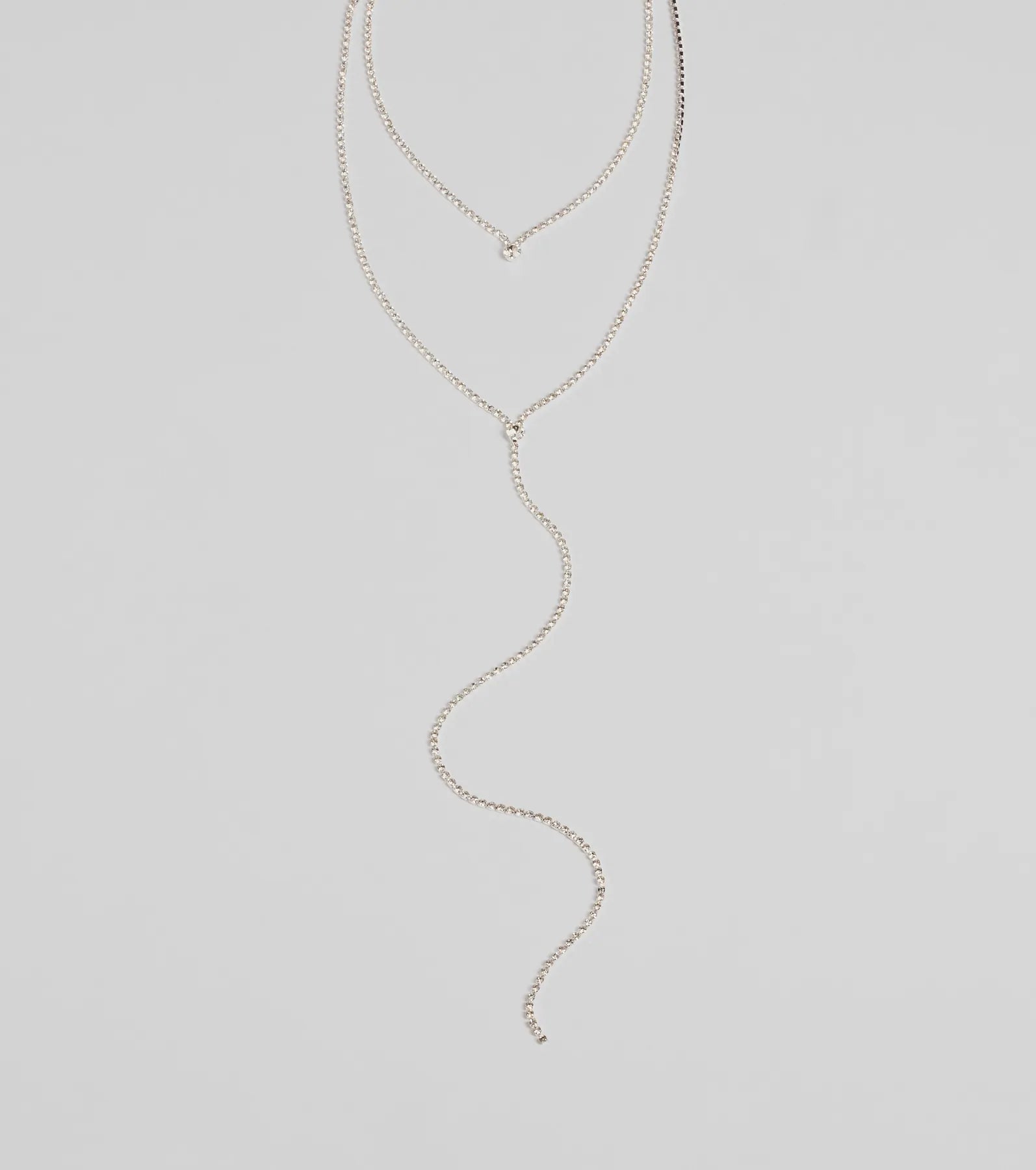 Trendy Glitz Rhinestone Layered Lariat Necklace