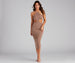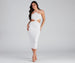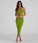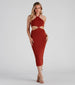 It's vacay season and this halter midi dress is here for it! Featuring a sleeveless, high neckline with a tie closure, cutout bodice with a cinch accent, and a bodycon midi-length hem. Composed of a nylon-blend knit fabric with a moderate stretch. Finish the look with trendy mules.