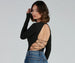 Showcase your daring side in this sultry top. It features a crew neckline, long fitted sleeves, and an open back with a strappy angled lace-up design that ties at the hem. Style this top with distressed denim and heels.