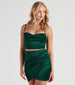 This satin crop top brings fun and stunning looks to your night! The top features a sleeveless cowl neckline, pleated detailing at the bust, spaghetti straps, and a cropped, form-hugging fit. The smooth satin-knit fabric offers a moderate stretch. Complete the look with the matching mini skirt and strappy heels.
