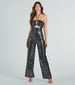 This gorgeous sequin jumpsuit brings the ultimate glamour to your party looks! Crafted from a sparkly lurex knit fabric with all-over reflective sequin embellishments, this glitzy jumpsuit features a sleeveless plunging halter neckline with tie-back straps, an alluring waist cutout at the front, a hip-hugging fit, and a wide-leg silhouette. Style with metallic platform heels!