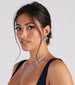 Uniquely stunning, these statement earrings will elevate your red carpet look! They feature a large rhinestone gem post with a mini metal ball trim and cluster rhinestone accents. the earrings have a post-back closure. Complete the look in dressy platform heels.