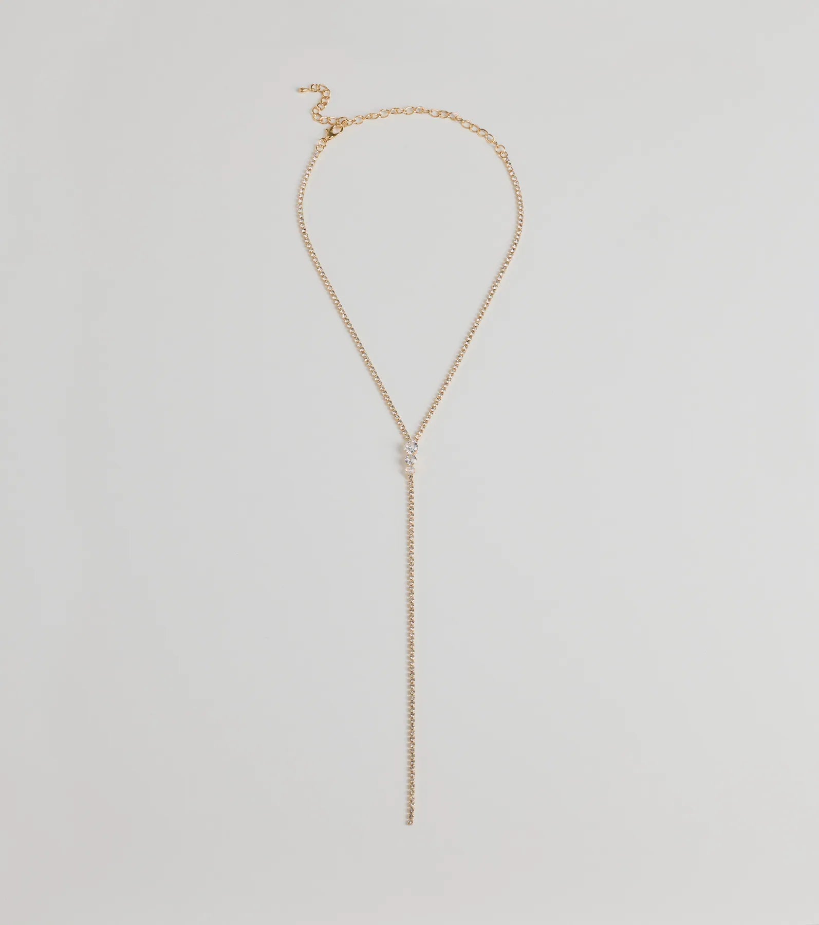 This choker necklace features a Y-shaped design with a long cascading lariat and cubic zirconia-embellished accents for a hint of glamour. Perfect for accessorizing with a formal dress and earrings.