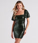 A girl like you deserves to shine! Make the room sparkle in the Vera sequin dress at formal dances, birthdays, and dressy date nights. She features adorable short puff sleeves with elastic cuffs, a square neckline, and a short, bodycon silhouette. The formal party dress is composed of a sequin-knit mesh fabric with a stretchy knit lining. Style with an envelope clutch and heels to complete the look!