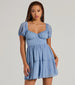 Swiss dots add whimsical appeal to this charming chiffon skater dress perfect for birthdays, graduations, or showers! With sheer puff sleeves, a sweetheart neckline, and a tiered ruffled skater silhouette, this dress is both playful and flattering. Its short-length hem adds a touch of flirty charm. Complete the look in mules and a trendy purse!