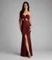 In this strapless maxi dress, you'll be checking yourself out in every mirror you pass! It boasts a metal square accent with a chic drape, a cutout bodice to show some skin, and a high front slit for effortless movement.