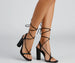 Wrap yourself in block heels that add that finishing touch to your outfit! The heels feature an open back, lace-up ties, an open square toe with a strap over the toe, and a block heel. The heels are composed of a faux leather material. Complete look with a mesh bodycon and rhinestone earrings.