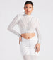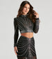 Gorgeous rhinestones wrap around your curves on this crop top featuring long sleeves with shoulder pads, a crew neck, and a cropped hem on sheer mesh fabric with partial lining. Complete the look with the matching maxi skirt for a dressy birthday dinner!
