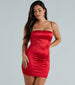 Ready to make a statement? Yes, please in this stunning satin mini dress! The short dress features a square neckline, adjustable spaghetti straps, an underbust seam, a flattering bodycon silhouette, and a mini-length hem. The satin fabric has all-over colored rhinestone embellishments. Complete the look in platform heels for a night out!